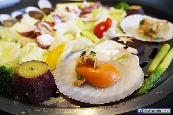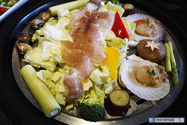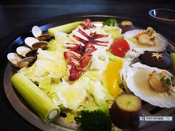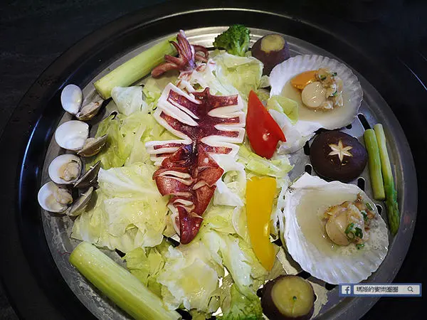 再來要上桌的是時令蔬菜+新鮮透抽&蒜味扇貝,同樣由服務人員依序排好,方便在蒸煮的過程中能均勻受熱。