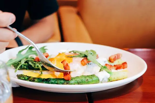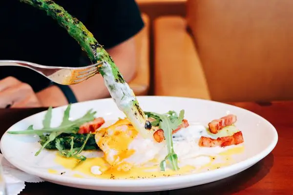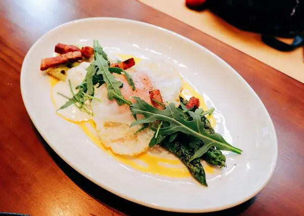 使用了煙燻培根、煎鴨蛋、瑞可達乳酪、柳橙濃縮醬汁