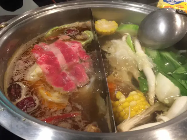 蒙古香辣則是適合涮涮肉品,不像其它店家的辣鍋會嗆口,是溫和可以直接喝的辣湯,