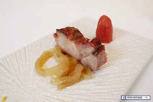梅汁蕃茄帶來口感一陣涼感和刺激,這道前菜由左而右的順序吃下來,正好再蕃茄清除口中的味道後,又可以接續再品嚐下一道美食了。