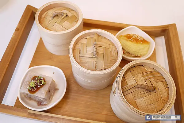 用著木托盤盛裝著小巧可愛的迷你蒸籠,這種個人式的港點套餐還真的不多見。