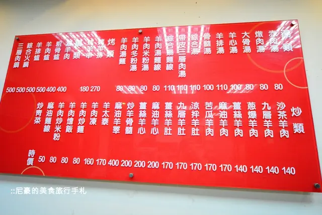 ▲價目表的部分都在牆上,除了有羊肉爐之外