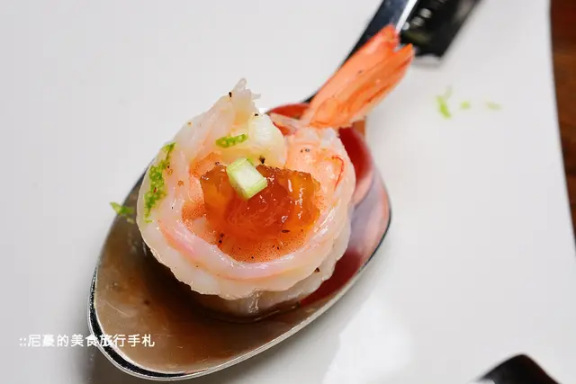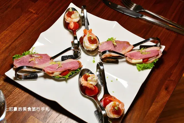 ▲這兩道開胃菜鴨肉屬於味道較重的,所以從鮮蝦先品嚐