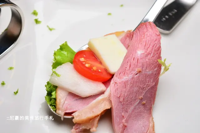 水梨的甜與鹹香軟嫩的鴨肉做調和,起司增添不少香氣,而番茄則是相當解膩