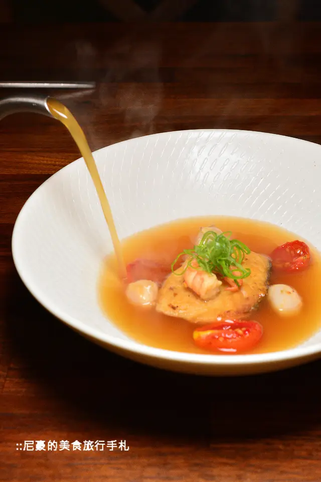 ▲接著服務人員會來添加湯底,這樣這道鮮煎土魠魚湯就完成囉