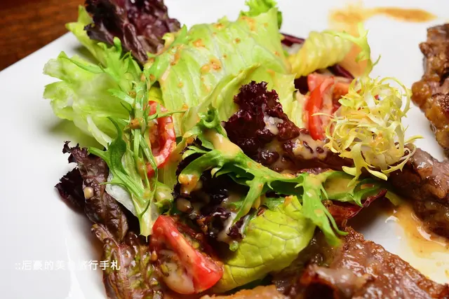 ▲一旁的生菜則是胡麻醬風味,搭配著吃頗為解膩
