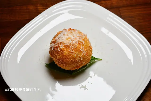 ▲飯糰上面撒上了帕瑪森起司,而飯糰裡面包的則是馬茲瑞拉起司