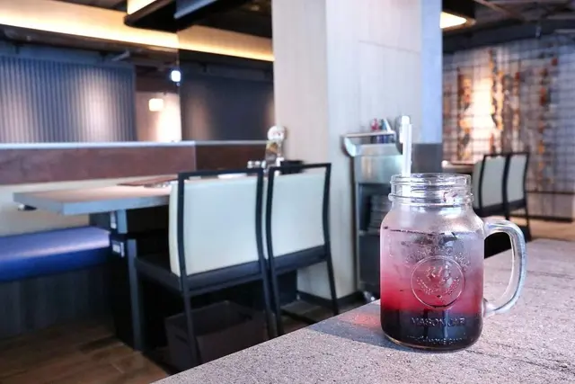 粉紫色美麗的漸層,沁涼爽快的葡萄口味氣泡蘇打水,不會過甜膩相當順口好喝又解膩。