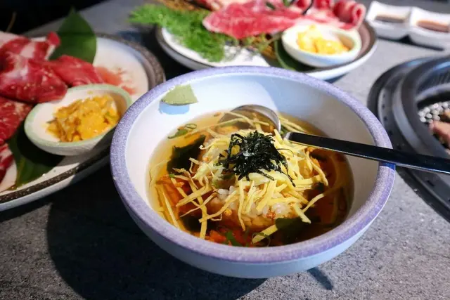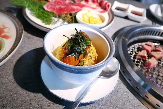 直接吃會稍嫌油膩,加入原燒搭配的生菜亦或是泡菜一起吃,降低整體油膩變的清爽許多。