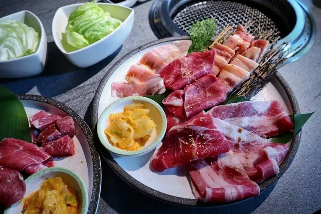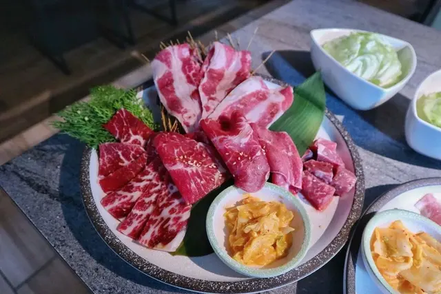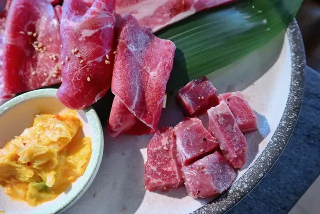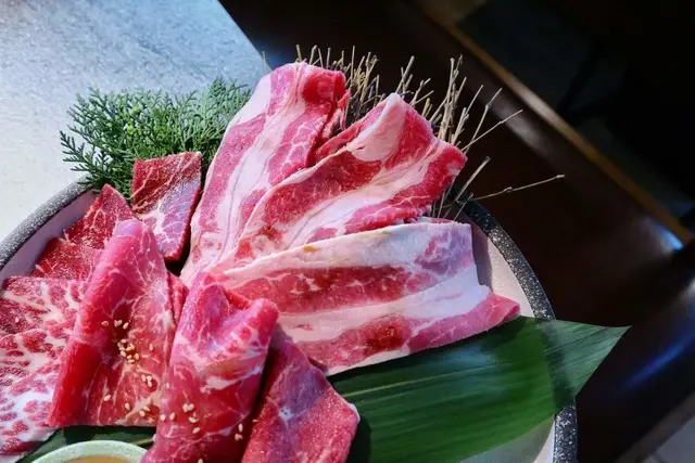 原燒肉品質相當美好,不管是什麼樣的肉品皆有著美麗的花紋,肉切的厚度也相當考究,非常好吃讓人意猶味盡,