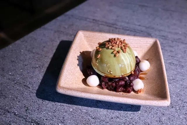 一球可愛抹茶冰淇淋搭配紅豆、白玉丸子,脆脆的米香增添整體香氣及口感,抹茶甜味大於苦味沁涼滋味,滿足了飯後想吃甜點的慾望。
