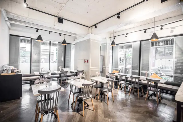 走進小田食光 FIELD,室內空間也是相當讓人驚艷,用餐空間分為左右兩側,整體設計偏向簡約風格,沒有太多的時尚裝飾,但感覺是一派時尚優雅,透過大面玻璃窗所引進的自然光下,自然的光影在白與灰之間透著典雅的氣息,復古花紋的地板也為空間帶來令人為之一亮的視覺效果,搭配絕美大理石桌,怪不得網美都很愛來這裡拍照呢