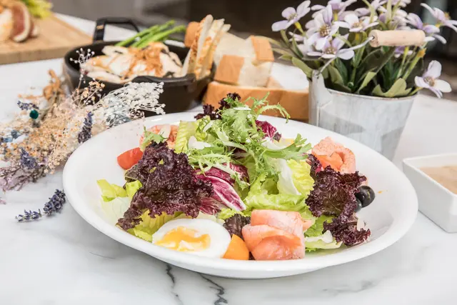 小田沙拉:炙燒燻鮭魚與有機糖心蛋/亞麻仁籽油醋