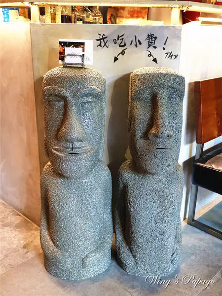 一進門設有等候座位區,旁邊還有兩個吃小費的摩艾石像,很有趣。