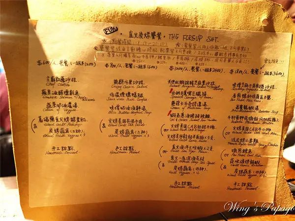 提供每人$600、$800、$1200到$1800(需三日前預訂)等四種價位套餐,