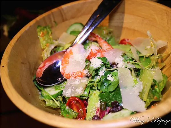 沙拉用木盆盛裝,而且一碗份量還蠻多的呢!