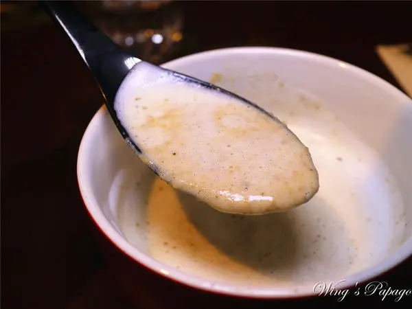 濃湯裡以多種野菇加上一點牛肝蕈去提味,上層還有手打的奶泡,