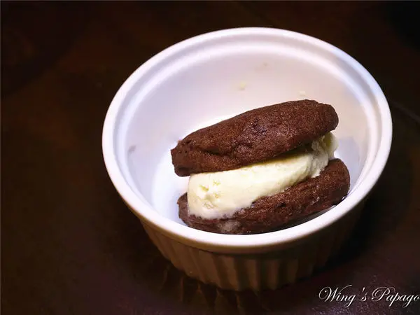 這一季的甜點是手工冰淇淋三明治,手工餅干夾著杜老爺冰淇淋,