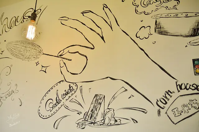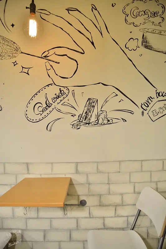 玉米家店內小小的,但有些溫馨感,牆上畫著的黑白插畫也滿有趣,第一次見到烤玉米也能有店面,而且頗為用心,實在難得!