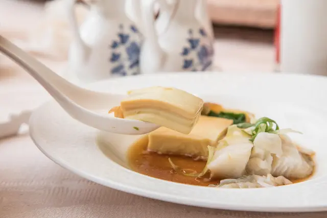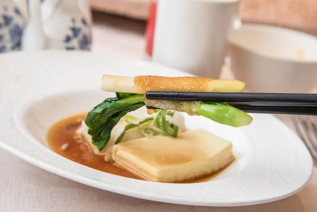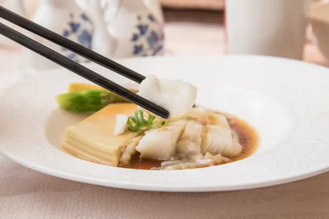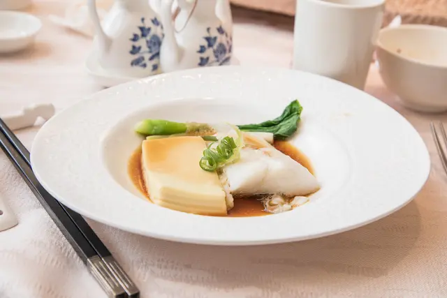 鱈魚肉質相當細緻,經過蒸煮膠質甜度完全釋放,搭配底下滑嫩的蛋豆腐一起入口,軟綿鮮香