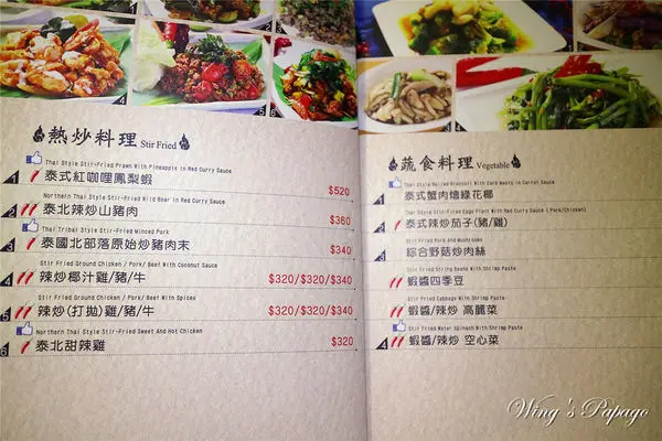 MENU,廚藝總監是來自泰國清邁的阿千師,