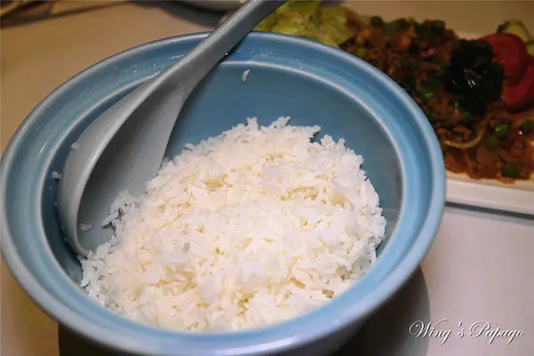 白飯每人酌收30元,不夠可以再續,泰國長米吃來香Q有嚼勁。