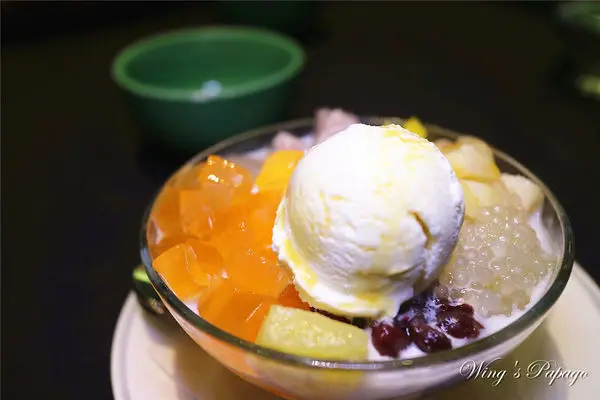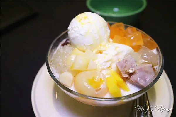 再加入蜜芋頭、蜜紅豆、熱帶水果及果凍等多種配料。