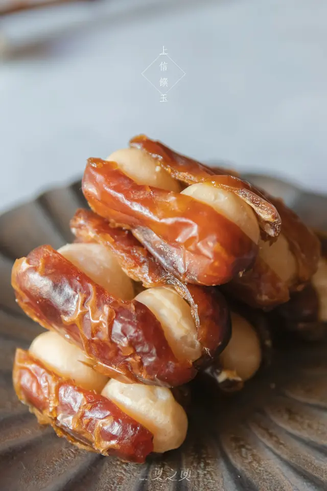 上信饌玉的南棗核桃糕處理方式讓我感到相當喜歡:從前自己真的不愛吃,印象中的南棗核桃糕,外層總有很厚的糯米紙,主體的棗泥總是會黏牙又難咬,裡頭的核桃還很容易有油耗味,所以一直對這個東西並沒有太大的好感。