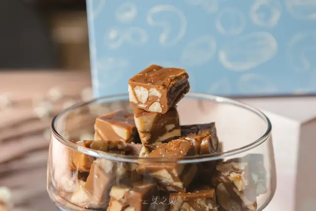 因為其實一開始看見「太妃糖」三個字時,直覺會是黏牙類型的點心,而我個人真的對「黏牙系」感到不擅長;沒想到吃下第一顆時,發現居然完全沒有黏牙感,反倒是酥酥脆脆的,嚼著才有非常濃郁的焦香太妃糖的香氣噴散出來,直至充滿整個口腔;裡頭的杏仁果也在無論是咀嚼口感或是香氣方面,都增加了不少層次感。