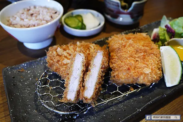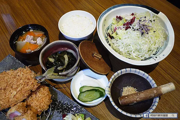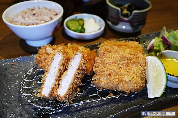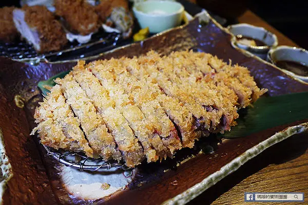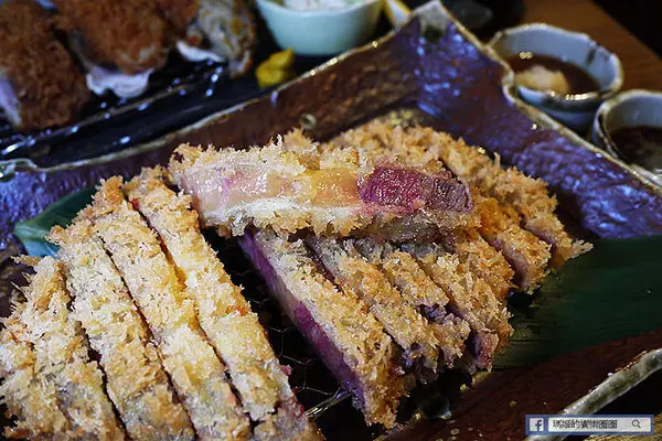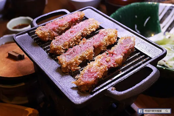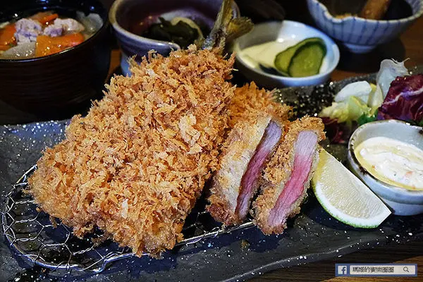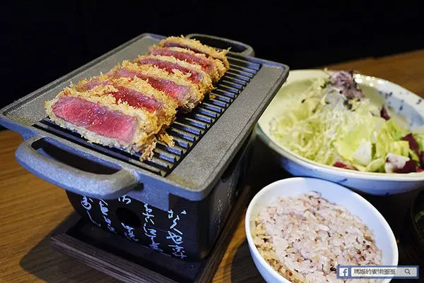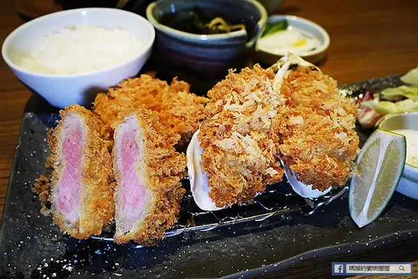 「酥炸炙燒肋眼牛排套餐」 NT$520,採用紐西蘭肋眼牛肉,輕裹新鮮麵包粉酥炸至三分熟度上桌,帶著粉紅色擇的炸牛排,肉質鮮嫩,因考量每位顧客的喜好,勝勢以熱鐵板盛盤,讓顧客可依個人喜好,自我主宰牛排生熟度,是日式豬排料理中首創的創意吃法!另再提供兩款不同沾醬~芥末醬油及柑橘醋蘿蔔泥,口味多元變化,絕對顛覆您對傳統炸豬排料理的刻板印象。