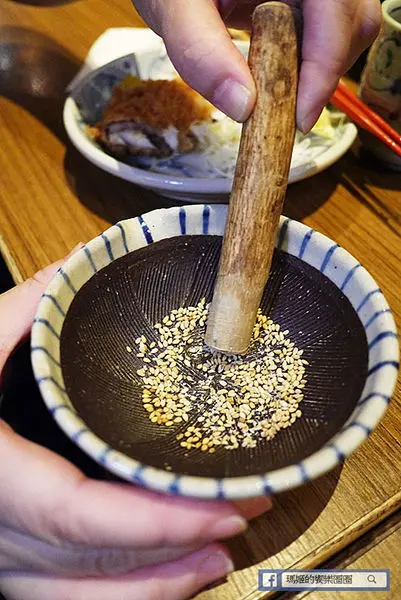 搭配自己動手磨的深煎芝麻加入豬排醬,夾上一塊厚實豬排沾上送入口中,讓人無盡滿足!