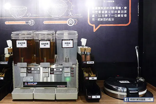 除了看菜單點餐外,店裡有一處採自助式的飲料和湯品區