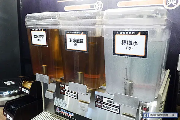 飲料提供熱的玄米煎茶和檸檬冰水,湯則是味噌湯