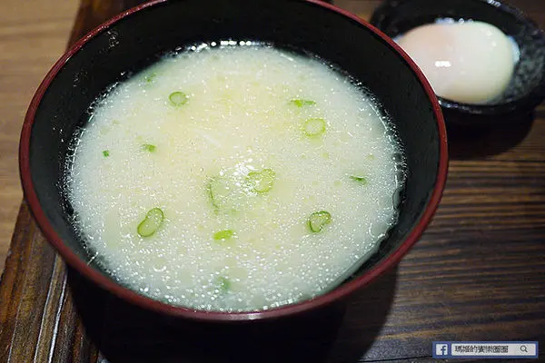 整份王樣雞丼附有一大碗的雞湯,這乳白色雞湯像是熬了很久,好料沉甕底的精華全在裡面,喝起來濃郁而不油膩