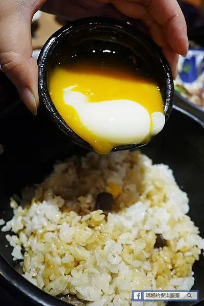 把雞肉都吃完了再把溫泉蛋放入米飯裡,攪拌後一起吃讓米飯增加了滿滿蛋香味