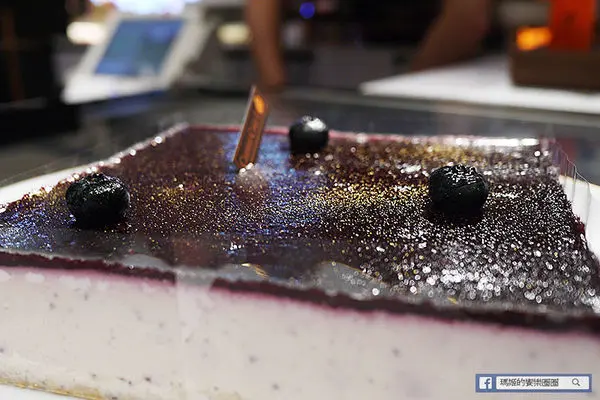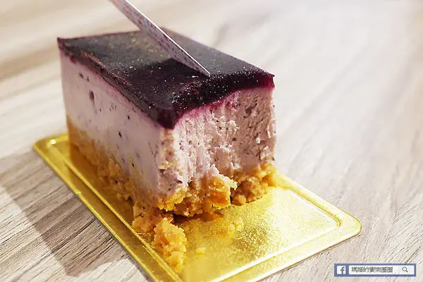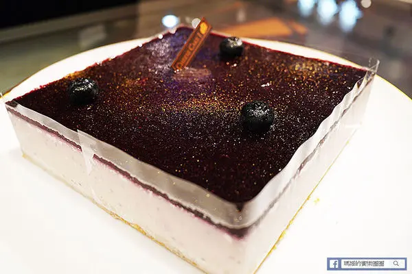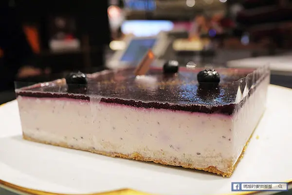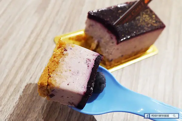 除了表層的藍莓鏡面外,中間加了藍莓和自然熟成乳酪的口感滑順如絲,觸動舌尖的喜悅!