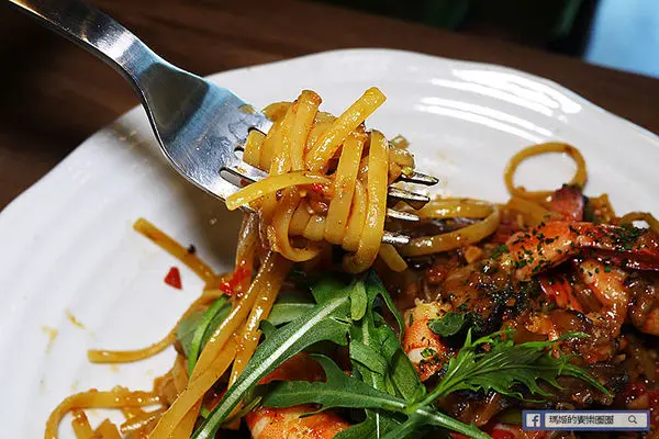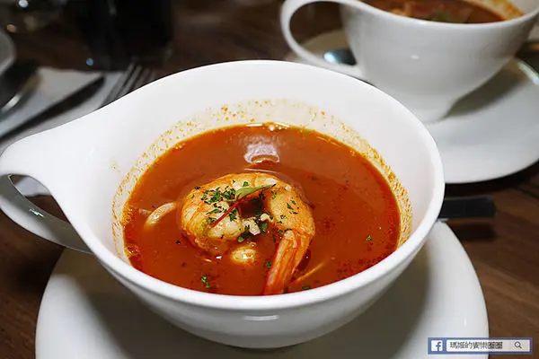 以蕃茄為基底的湯頭喝起來有濃濃的海鮮風味,裡面放了一隻去殼的大鮮蝦和蛤蜊、花枝等海鮮料,真材實料味道也好極了,推推!