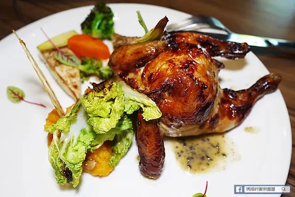 「烤春雞」580元,店內黑板有看到這道菜色就很想點來嚐嚐,正好家人也都很愛雞肉料理