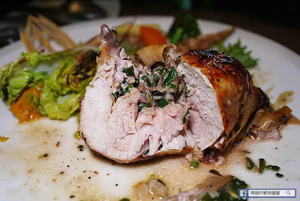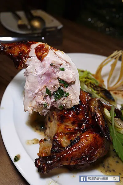 除了雞腿、雞翅保留骨頭外,其餘都貼心去骨,春雞肚子裡還暗藏青蔥提味,讓肉質多了蔥香和蔥汁入味