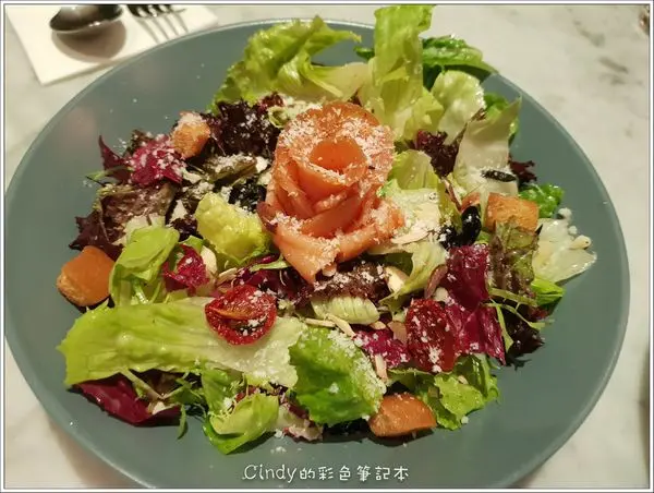 ●燻鮭魚蜂蜜油醋沙拉 250元