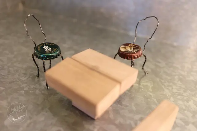 使用酒瓶蓋製成的小椅子模樣十分可愛,還搭配了張小桌子,讓我忍不住停留欣賞了一下。