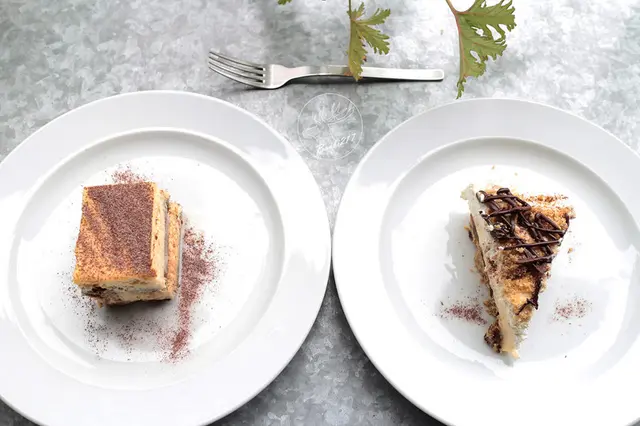 吃完了正餐,準備享用期待已久的甜點,香蕉奶油派與提拉米蘇。