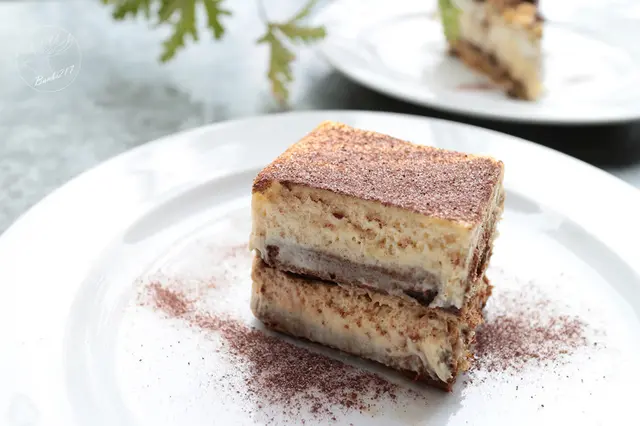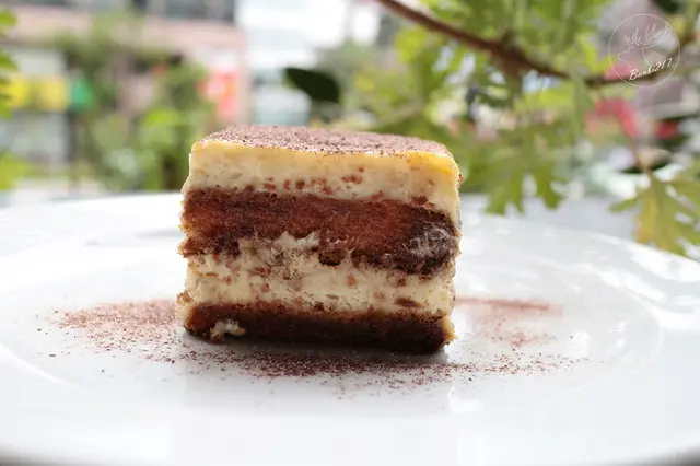 浸泡咖啡酒的手指餅乾、馬斯卡彭起司餡及巧克力粉,和上方的香蕉奶油派同樣為多層次口感的甜點,此手指餅乾柔軟但仍保有Q軟口感,咖啡及起司香且滑順,讓人滿意。