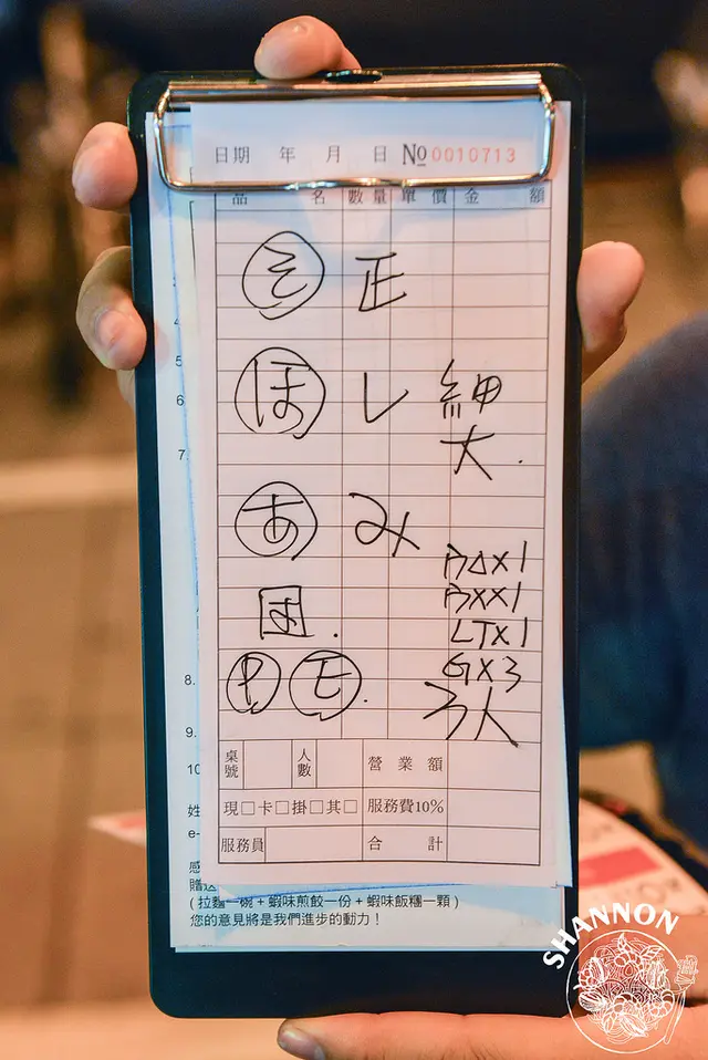 服務生幫我們點用寫了可愛的記號,雖然說我看不懂但最後餐點都沒上錯喲!