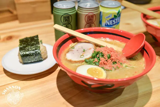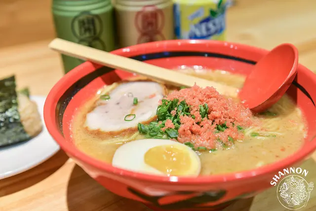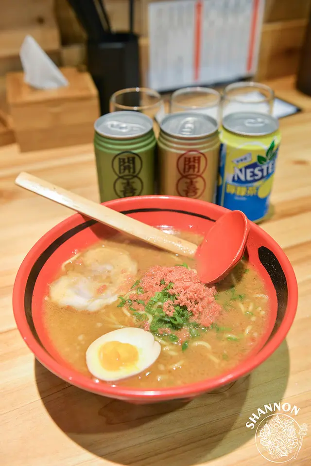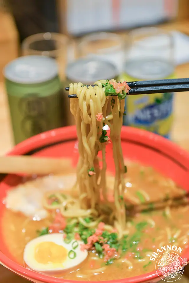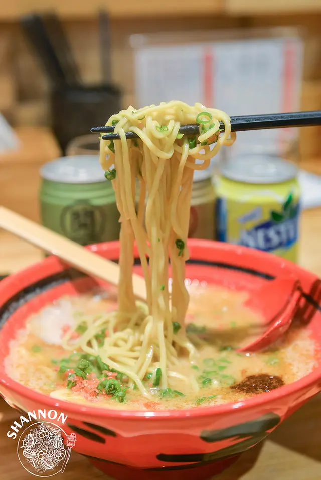 細麵口感也算適中,不知道是我們吃太慢還是麵條吸湯太快,粗細麵我們分不出來(頂多只細一點點),湯頭一入口蝦味還是很重卻多了淡淡的豚骨香氣,不管原味或是適量豚骨都是不錯的選擇,但也要有心理準備是道地的日本風味,怕一般台灣人吃不習慣呢!