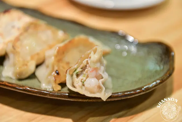 鮮蝦煎餃每一個都有一尾蝦仁,麵皮Q彈微微的焦香氣味搭配上豬肉內餡挺香的又散發出了蝦氣味,整體搭配的很棒~比起日本的"王將餃子"還要好吃呀!!!