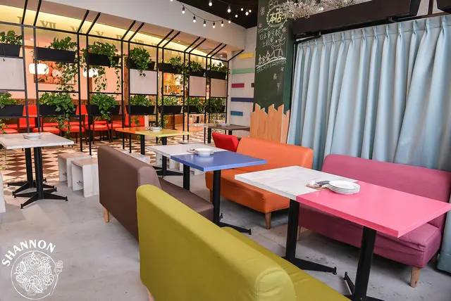 在四樓的甜點天堂,鮮明的裝潢充滿了植物也很引人注目