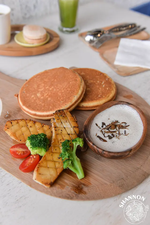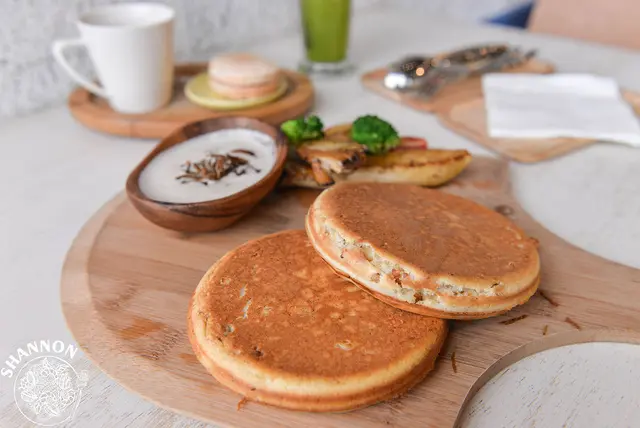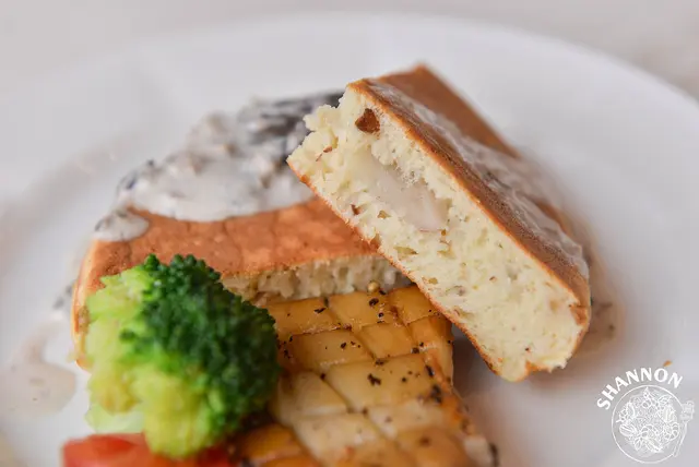 奶油杏鮑菇鬆餅佐炒菇椰奶醬 180元