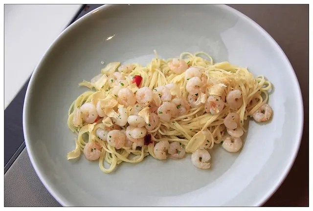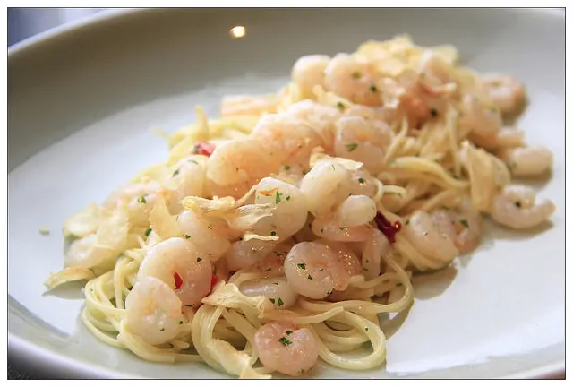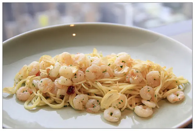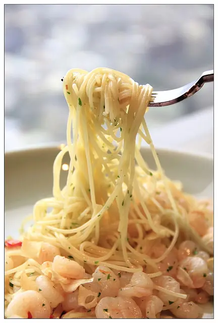 義大利麵採用天使細麵~口感滑順偏辣~清爽可口