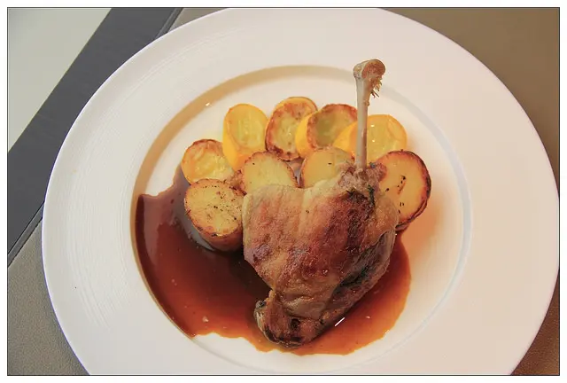 一旁的配菜是稍微煎過綿密細緻的馬鈴薯以及櫛瓜